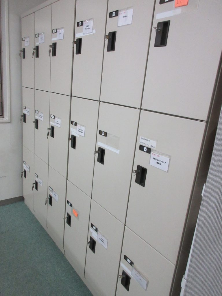 本会では、福祉パルなかはら内のロッカー及び棚の使用の公平を図るため、使用に関する要領を定め、平成20年4月から、登録および更新制によってパル利用団体に貸出しております。つきましては、使用を希望される団体におかれましては、要領をご一読のうえ、下記のとおり申込手続きをしていただきますようお願い申し上げます。