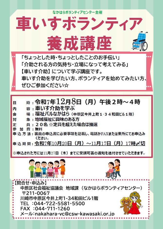 車いす介助を学びたい方、ボランティアを始めてみたい方、ぜひご参加ください☆