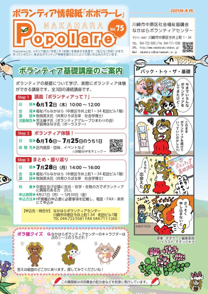 ホーム » ボランティアセンター » ボランティア情報紙「ポポラーレ」 » 「ポポラーレ」第75号を発行しました