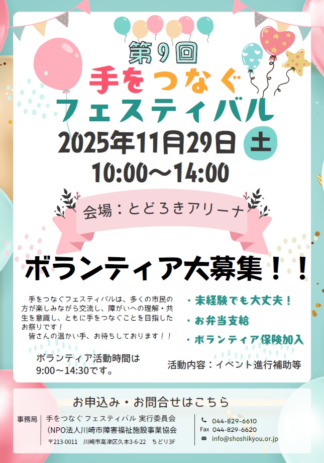 【ボランティア募集】川崎市第9回手をつなぐフェスティバル ※終了しました