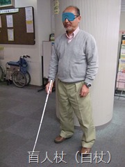 ※アイマスクを装着しての視覚障害者体験は、危険を伴います。安全に十分留意して、おこなうようにしてください。